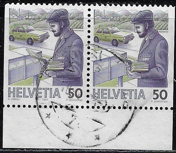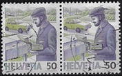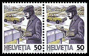 Postbeförderung – Markenheftchen = waagrechtes Paar links und rechts ungezähnt.