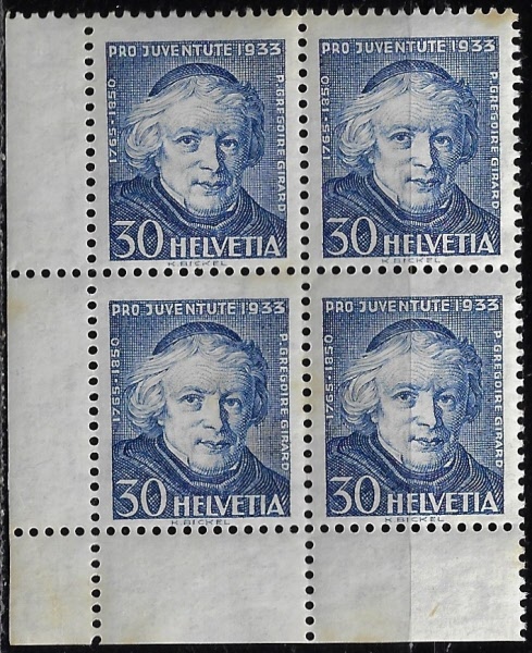 Papier: Kreidepapier mit oder ohne Wasserzeichen, blau + rot gefasert