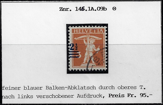 feiner blauer Balken-Abklatsch durch oberes T - nach links verschobener Aufdruck.