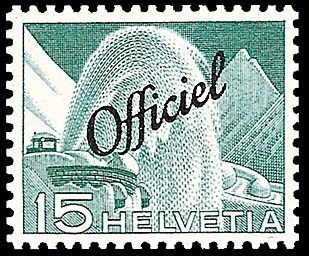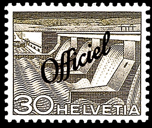 Technik und Landschaft ( Kraftwerk Verbois ) mit schrägem Aufdruck “Officiel»“