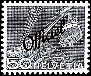 Technik und Landschaft ( Schwebebahn Säntis ) mit schrägem Aufdruck “Officiel»“