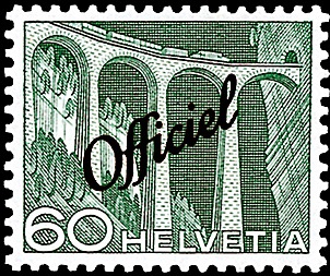 Technik und Landschaft ( Bahnviadukt Filisur ) mit schrägem Aufdruck “Officiel»“