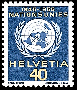 Für das Europäische Amt der Vereinten Nationen. Gedenkmarke 10 Jahre Vereinte Nationen.
