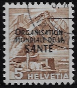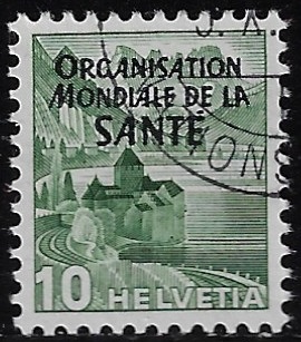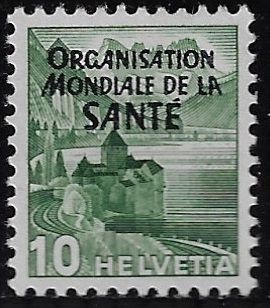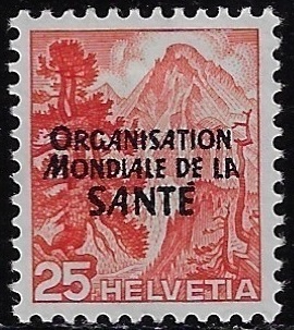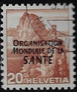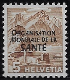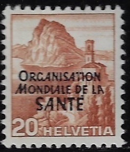 Für die Weltgesundheitsorganisationen, Landschaften (Kirche Castagnola), Farbänderung mit Aufdruck: “Organisation mondiale de la santé“