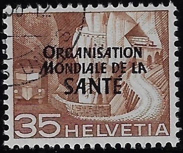 Für die Weltgesundheitsorganisationen, Technik und Landschaft und Symbol Motive Bergbahnen Rochers de Naye, mit Aufdruck: “Organisation mondiale de la santé“