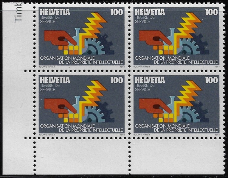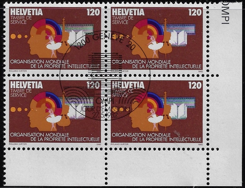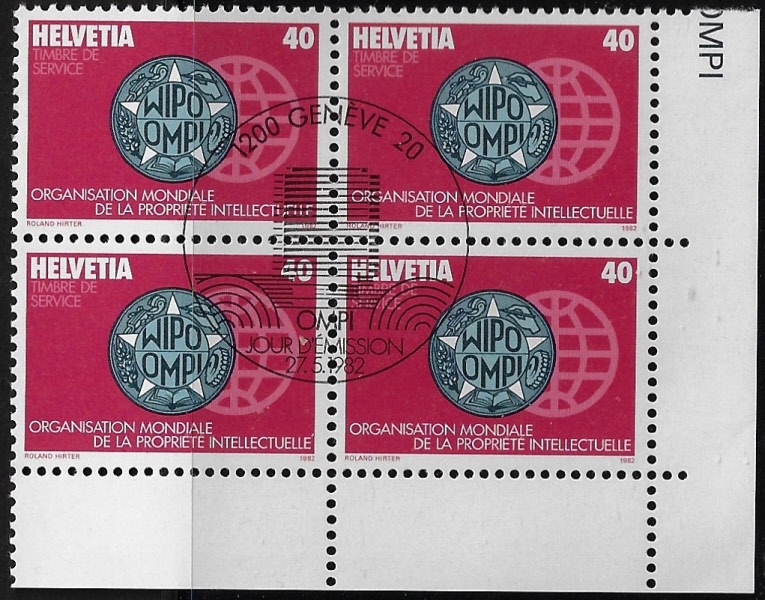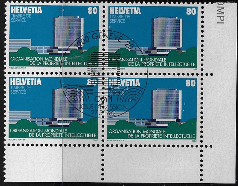 Für die Weltorganisationen, für geistiges Eigentum Genf, (OMPI). Symbolische Darstellung OMPI-Sitz in Genf. Symbolische Darstellung Gewerbliches Eigentum.