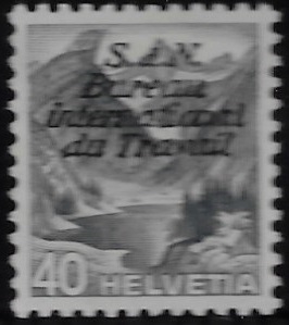 Für das Internationale Arbeitsamt (BIT). Freimarke mit 4 -zeiligem Aufdruck “SDN bureau intnational du Travail“ – Landschaften.