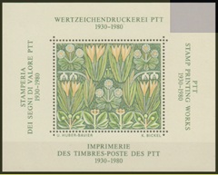 Schweiz Spezialblock-Vignette 50 Jahre PTT-Token-Druckerei 1980