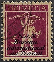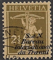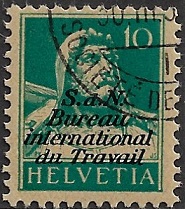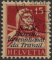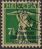 Für das Internationale Arbeitsamt (BIT). Offizielle Freimarke mit 4 -zeiligem Aufdruck “SDN bureau intnational du Travail“