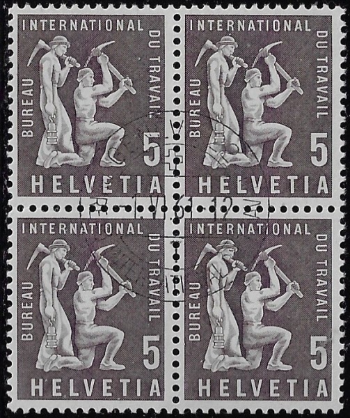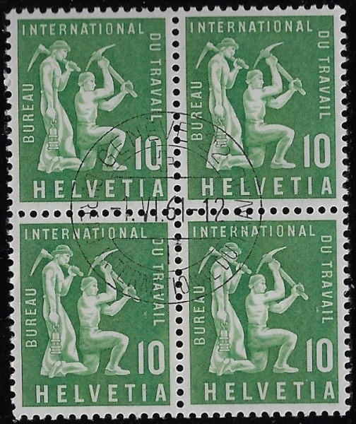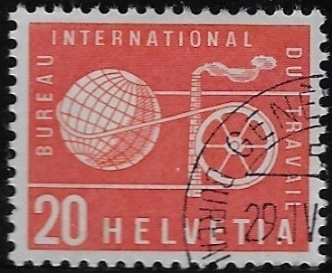 Für das Internationale Arbeitsamt (BIT). Symbolische Darstellung, mit Aufdruck “SDN bureau intnational du Travail“.