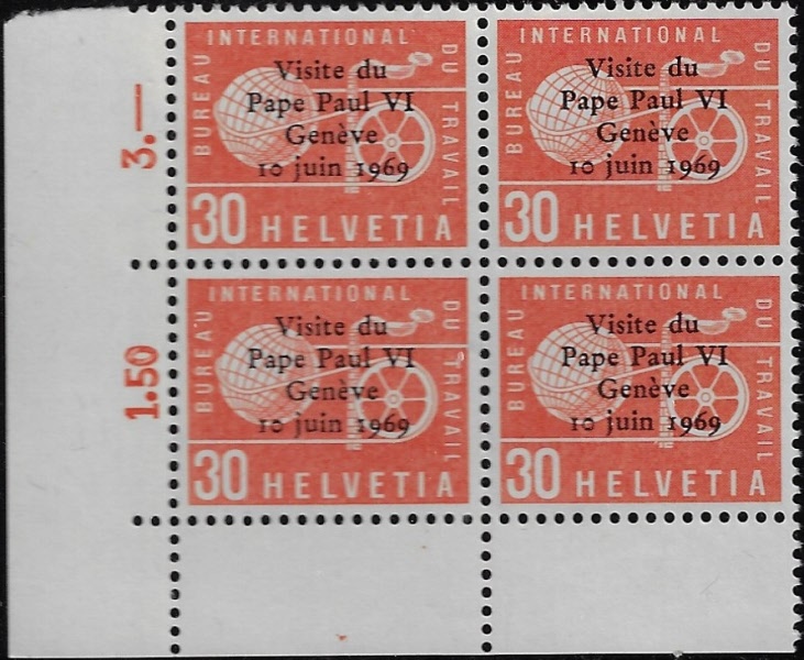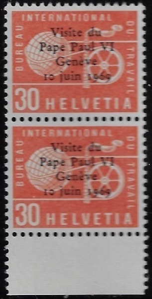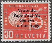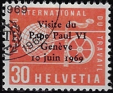 Für das Internationale Arbeitsamt (BIT). Symbolische Darstellung, mit Aufdruck “Visite du Pape Paul VI Genéve“.